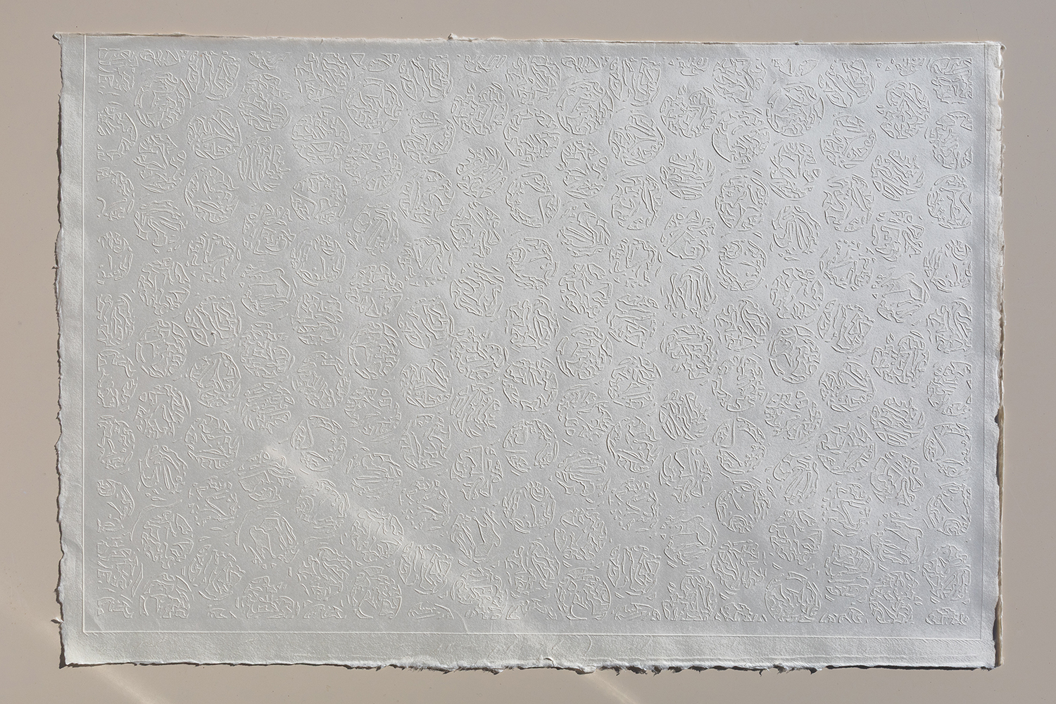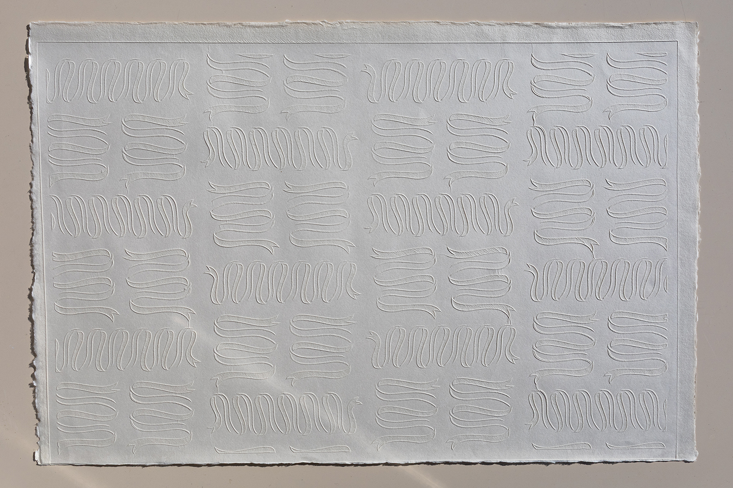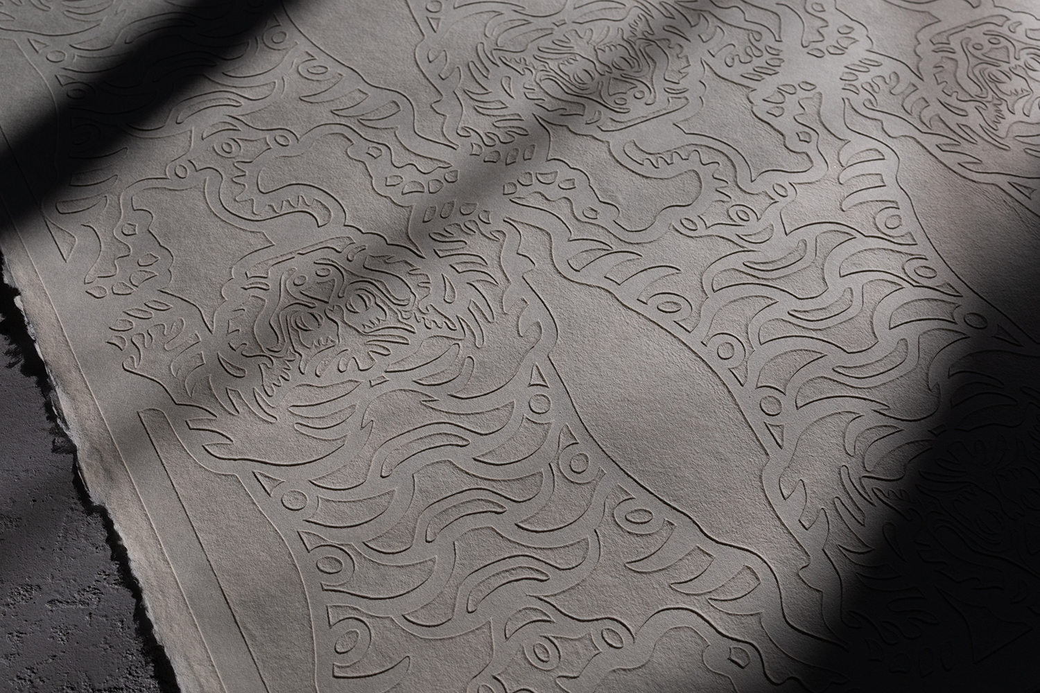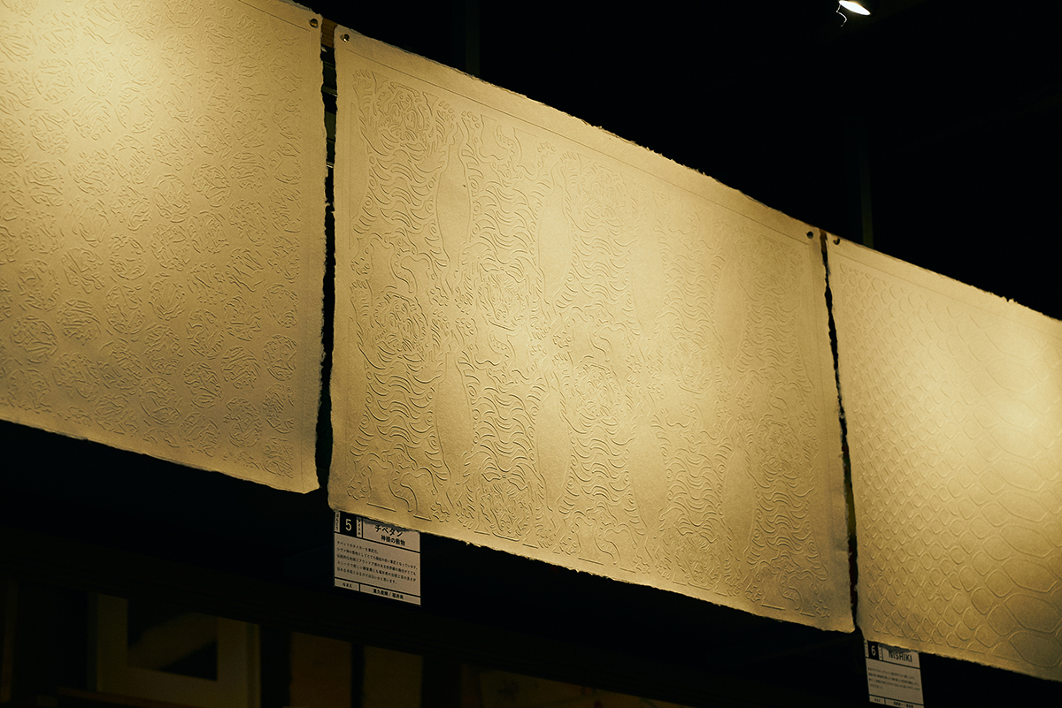 表面にシャープな凹凸がつけられるため、陰影によって柄が浮いたように見えることからその名がつけられた「浮き紙」。