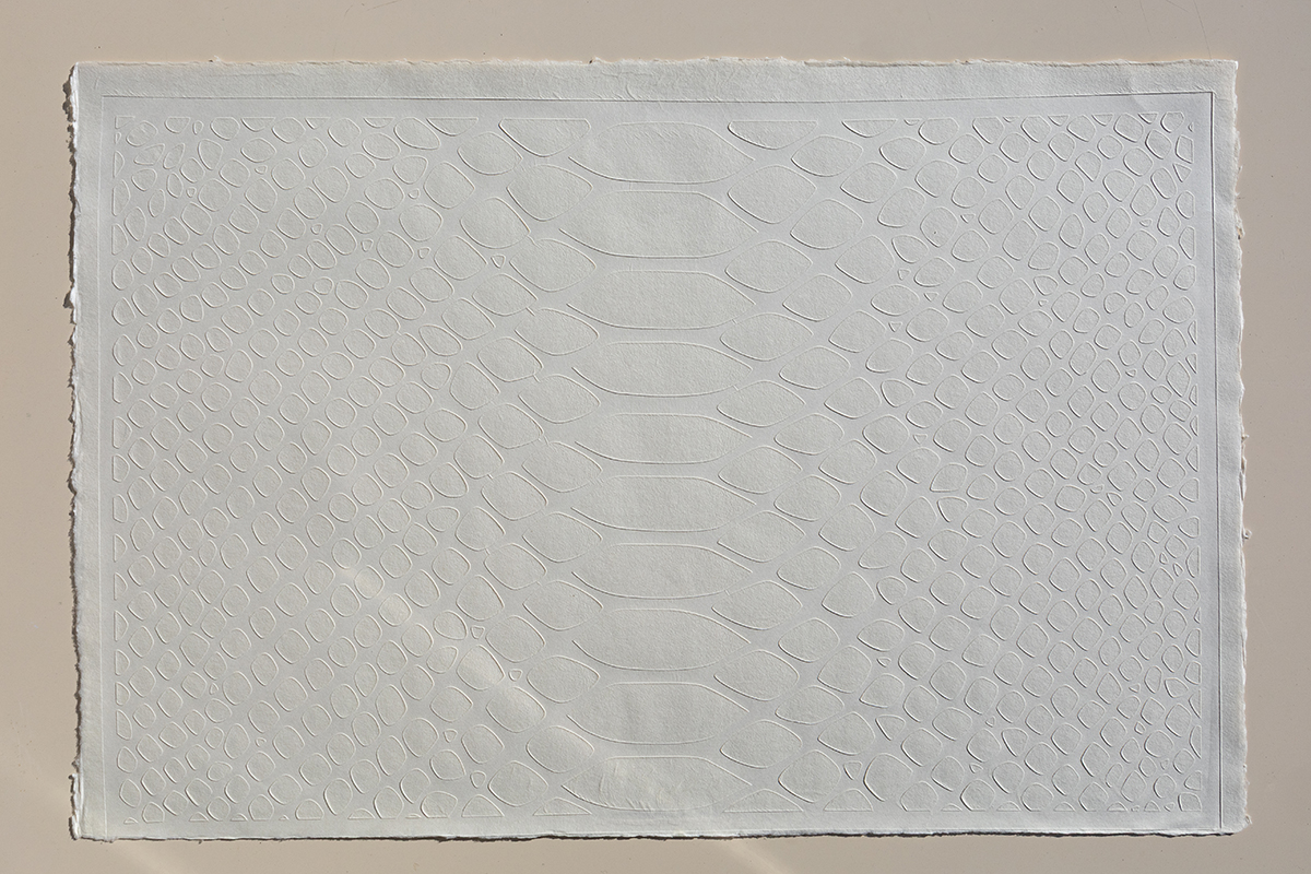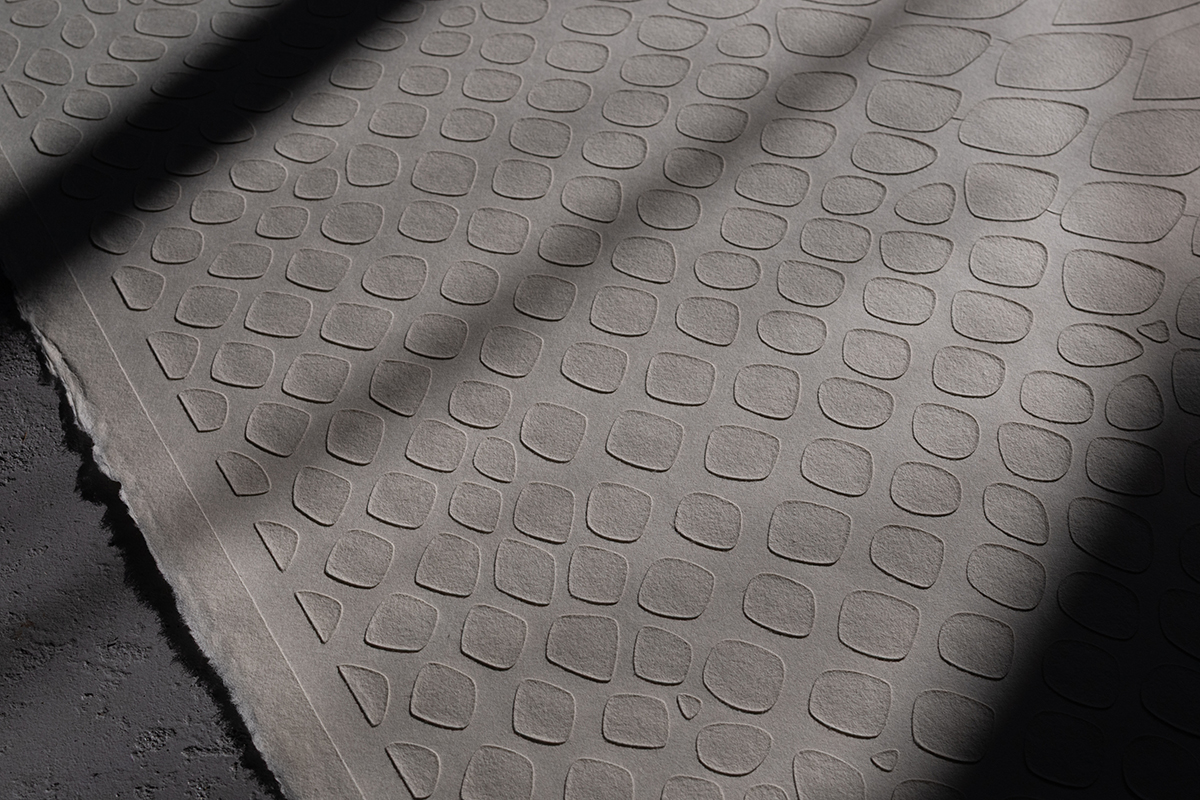 和紙の持つ神秘的な美しさと鱗の美しい凹凸感が融合したら、神々しい和紙が出来上がるのではないかと思いデザインしました。